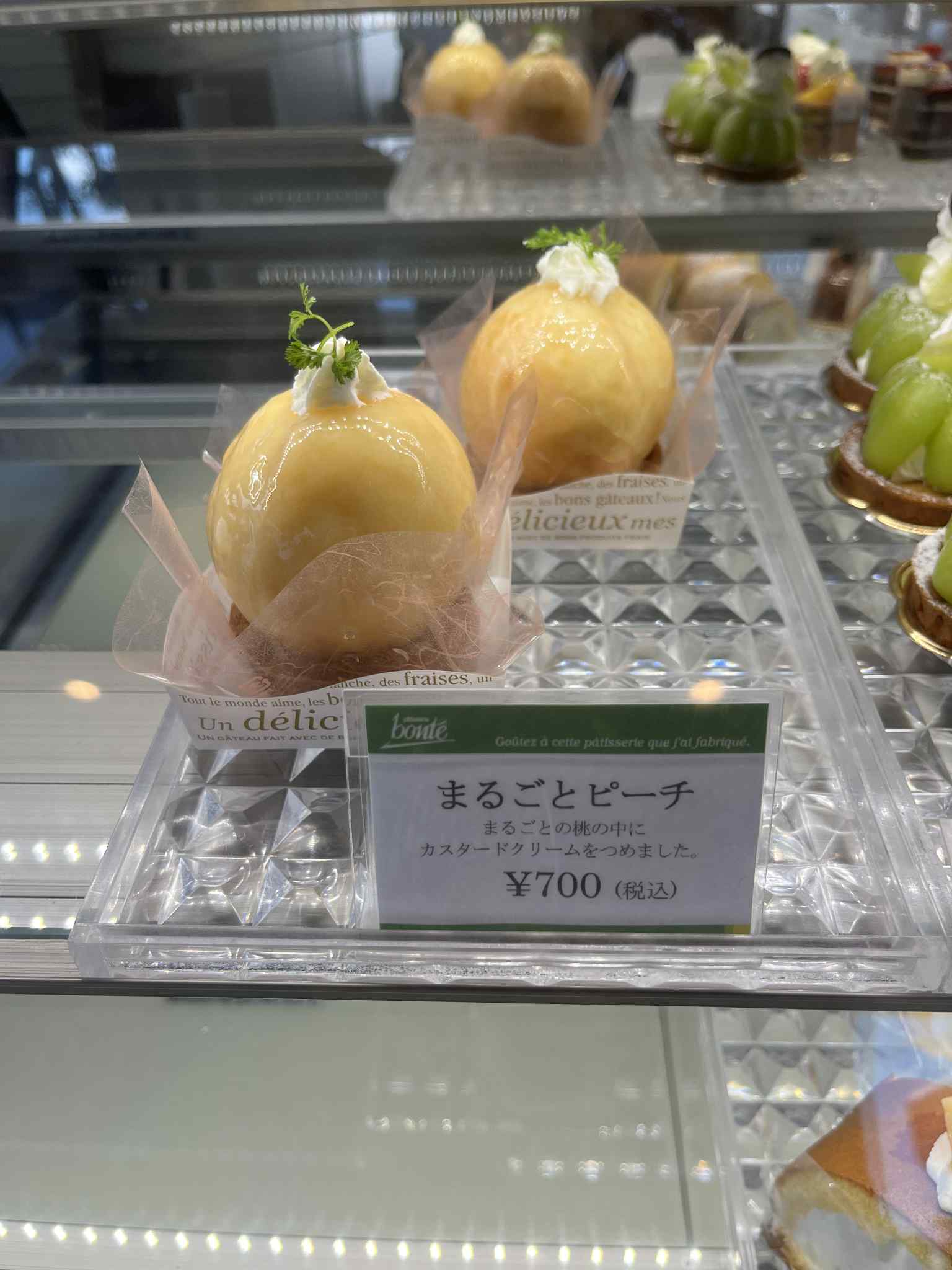 桃を贅沢に1つ使ってその中にカスタードクリームをつめました。